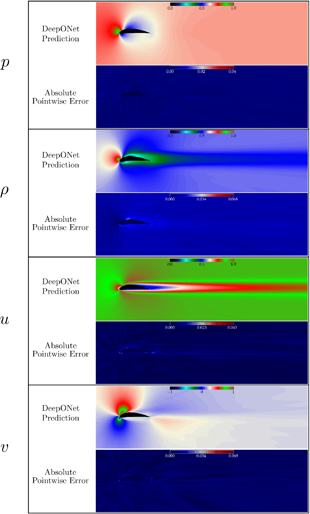 Figure 7: DeepONet Predictions. The pressure, density, and