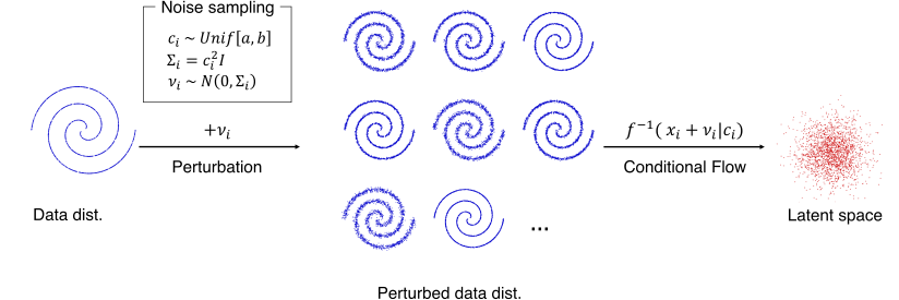 amortized conditional flow on the data distribution perturbed with Gaussian
