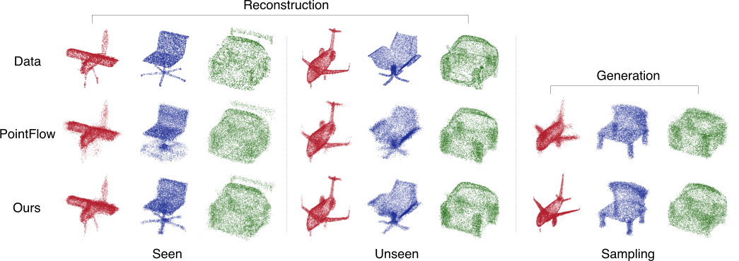 on four 2080-Ti GPUs, was compared with PointFlow. SoftPointFlow, built on