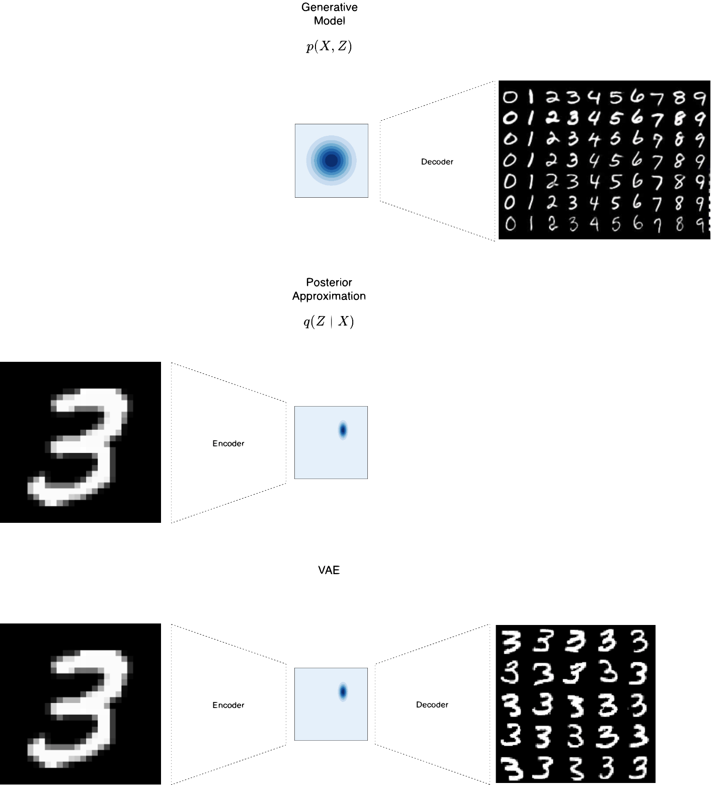 - See many prototypical probabilistic model types, e.g. Gaussian mixture, Gaussian processes, latent Dirichet allocation, variational auto-encoder, or Bayesian neural networks.